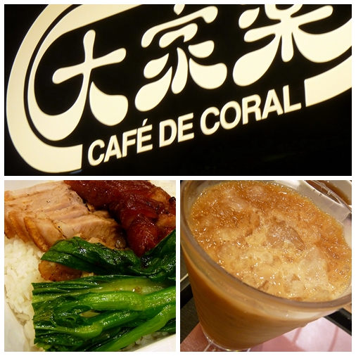 | All-time Favorite, Cafe de Coral, BBQ and Roast Pork combo with Iced Milk Tea |
