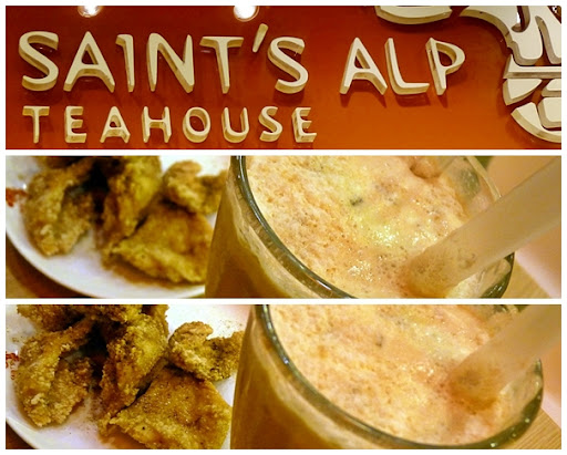 | Saint's Alp Teahouse Black Milk Tea with Pearl Tapioca and Taiwan Chicken Chops |