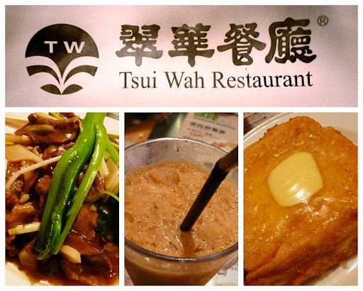 | Tsui Wah Satay Beef w/ Fried Rice Noodles, Iced Milk Tea, and French Toast HK Style |