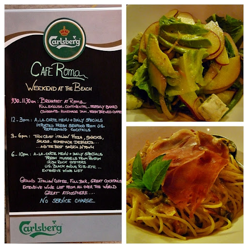 | Cafe Roma, Avocado and Apple salad and Carbonara |